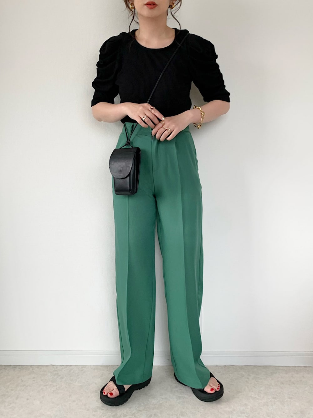 今年履きたいグリーンのスラックス🌿 ブラックと合わせて大人コーデです。 パンツはRe:EDIT by maikoです。 今日はZOZOTOWNで1000円クーポンも 出ています☺︎ ご覧下さりありがとうございました。