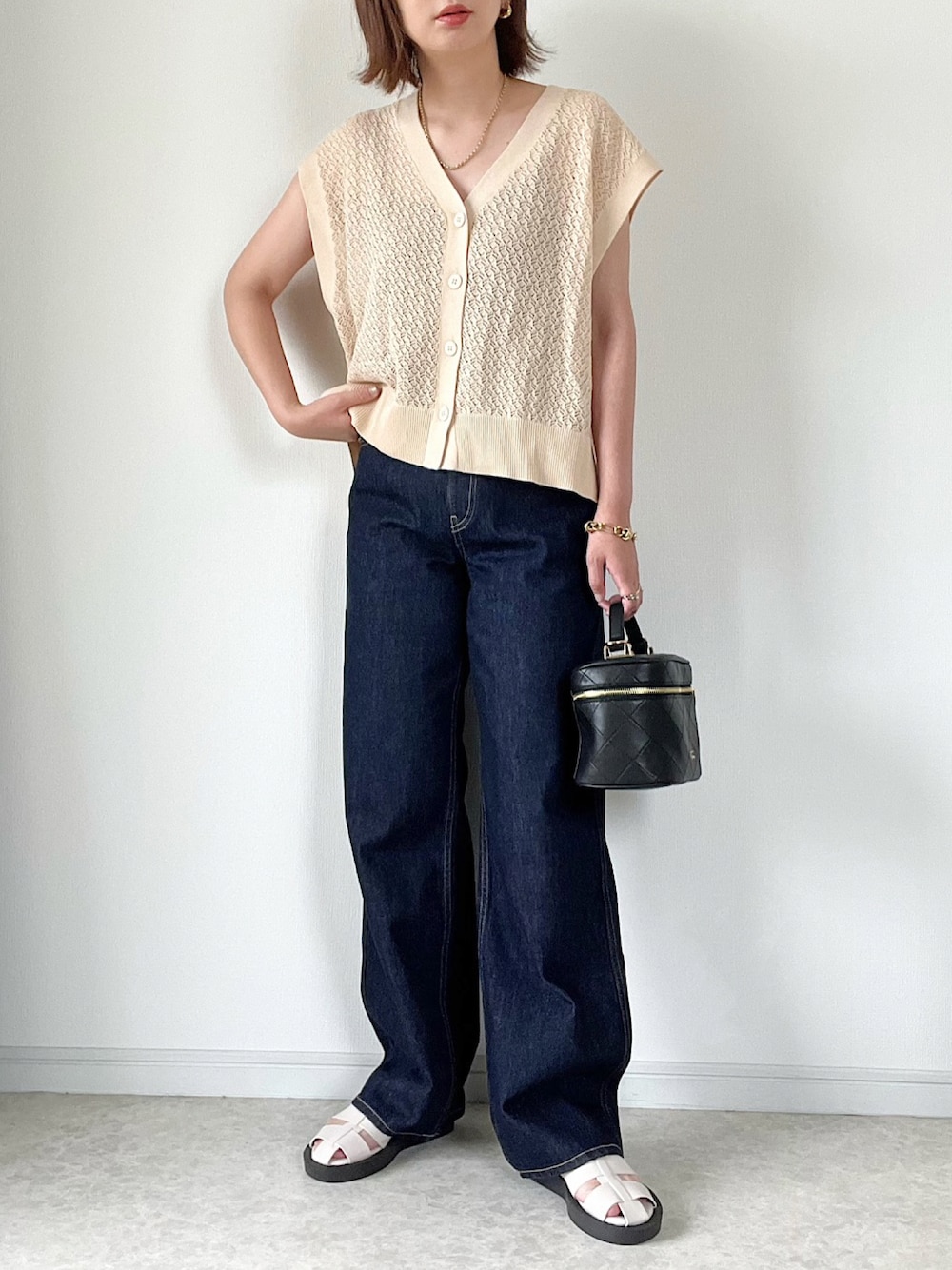 maiko のベスト「麻タッチレース編みニットベスト」を使ったコーディネート