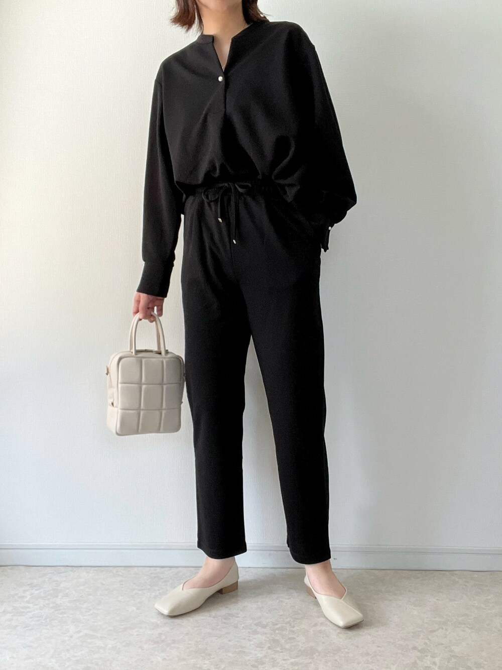 通勤や園行事に使える ブラックのセットアップコーデです☺︎ パールボタンがついているので ノーアクセでも大丈夫なのが嬉しいです。 着まわしコーデはInstagramに 載せています。 ご覧くださりありがとうございました。
