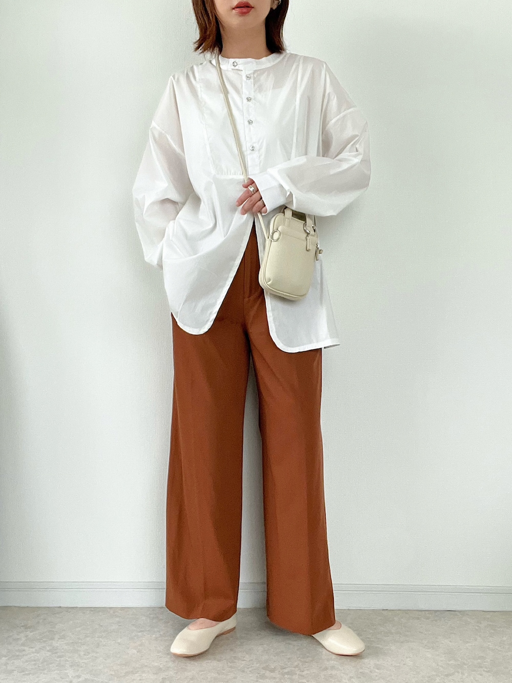 fizzさんとコラボさせて頂いた スタンドカラーデザインシャツコーデです☺︎ 定番カラーのホワイトは カラーパンツに合わせたりアウターの下に 着る時に使える万能カラーです。 1枚で着ても可愛いデザインなので、 寒くなる前から長く着ていただけます♡ 私のこんなシャツがあったら欲しいを 詰め込んだ1枚になったので 是非見て頂けたら嬉しいです☺︎ ご覧くださりありがとうございました。
