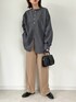 fizz×maiko コラボシャツのコーデです☺︎ スミクロは真っ黒よりちょっと 柔らかい印象になるように この色を選びました。 スタンドカラーでお尻が隠れる着丈は 簡単なコーデでも手抜きに見えないように しました。 もちろんニットやスウェットの下に着ても 可愛いです◎ 今日は1000円クーポンも出ているので 気になった方は是非見てみてください☺︎ ご覧くださりありがとうございました。