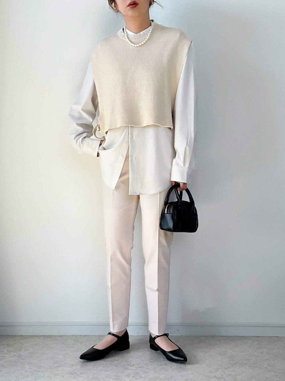 春のテーパードパンツ着まわしコーデです。 シャツはGUのMENSの バンドカラーシャツです。 ベストは数年前に購入したものです。 ご覧くださりありがとうございました。
