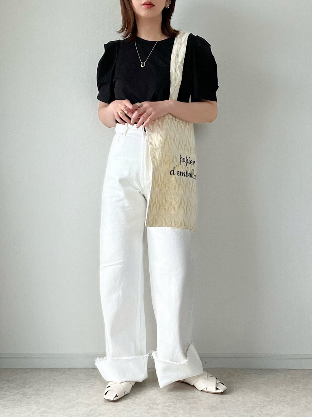暑くなったら着たい黒Tシャツコーデ。 パワーショルダーとロールアップが コーデのポイントになっています。 ご覧くださりありがとうございました。