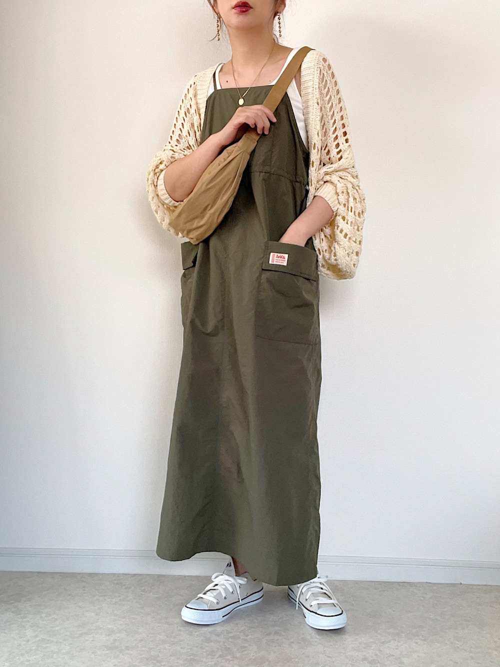 カーゴキャミワンピースの 着まわしコーデです。 エプロンぽいデザインがカジュアルで 可愛すぎます。 普段使いにぴったりです。 ご覧くださりありがとうございました😊