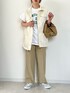 可愛いグリーンロゴのTシャツの 着まわしコーデです☺︎ ご覧くださりありがとうございました。