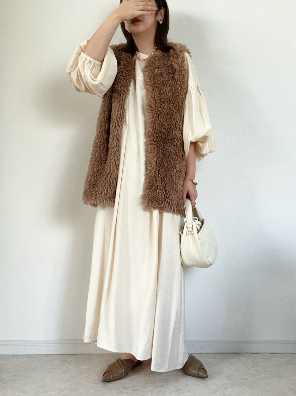 ロングワンピース×ボアベスト ご覧頂きありがとうございました😊
