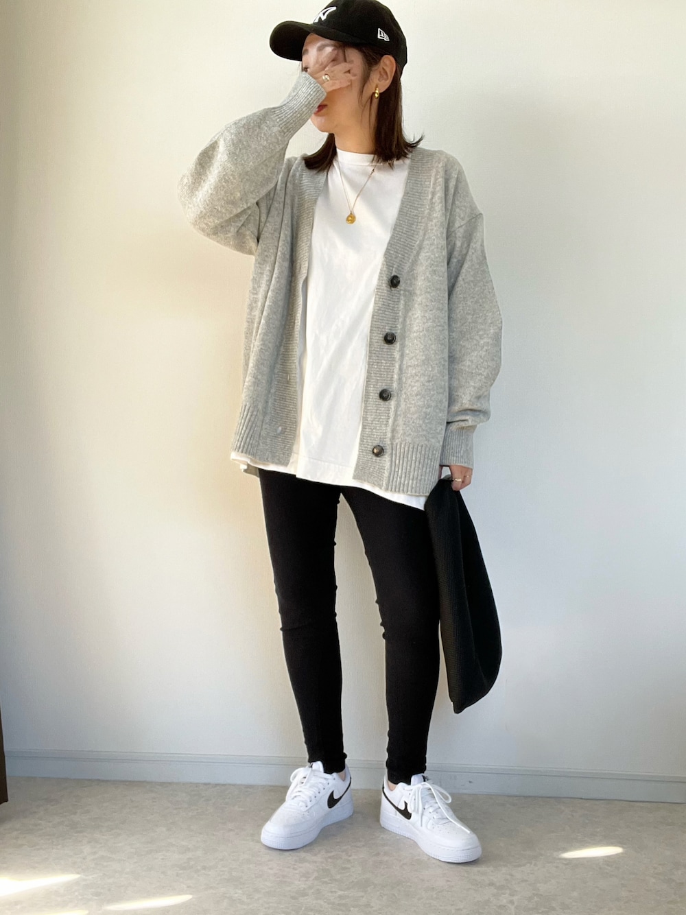 グレーのカーディガンコーデ🩶 肌触りや形が最高に良くて さっと羽織るのに重宝します。 キャップとスニーカーのラクチンな 組み合わせです。 ご覧いただきありがとうございました。