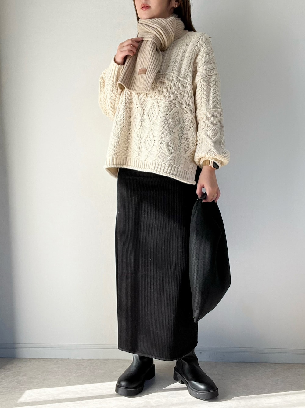 maiko のニット/セーター「【WEB限定】パッチワークケーブルニット」を使ったコーディネート