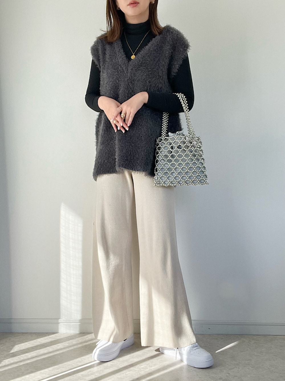 maiko のニット/セーター「【新色追加/WEB限定】フェザーヤーンチュニックベスト」を使ったコーディネート
