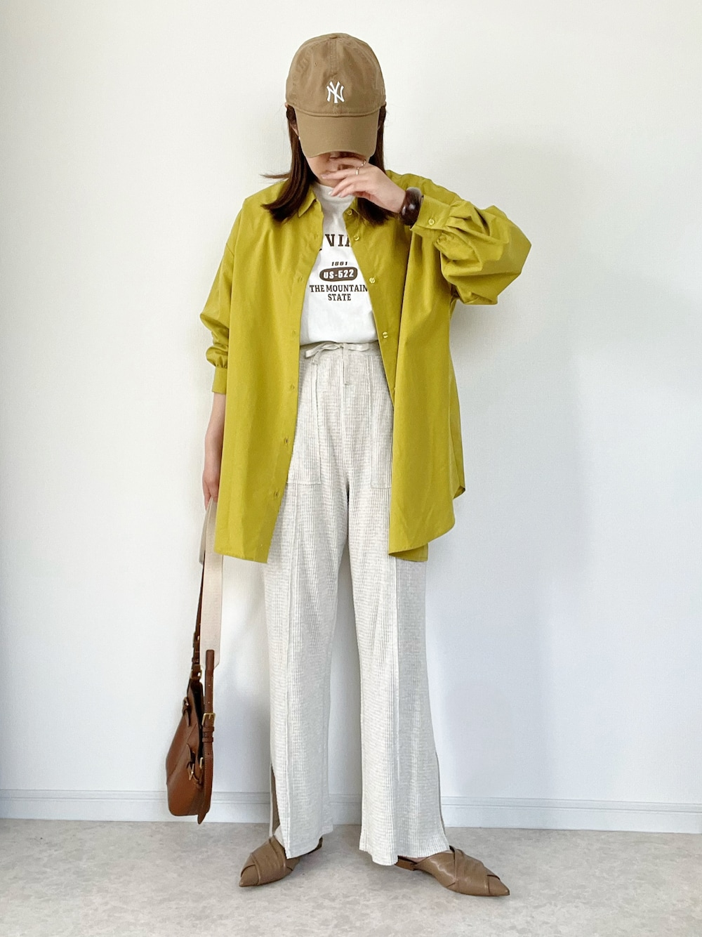 春のNewスタイル🌸 イエローのシャツが主役のコーデです。 パシオス ビッグシャツ 税込 ¥2,409 ロゴビッグTシャツ 税込¥1,309 ご覧いただきありがとうございました😊