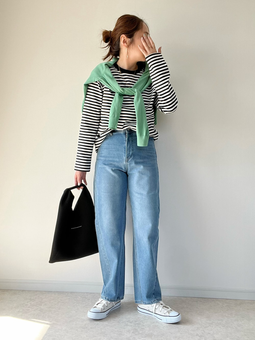 ボーダートップス×カーブデニム UNIQLOのカーディガンを肩掛けしました。 パシオス×maiko カーブデニム ¥2,409税込 とっても履きやすくて形がきれいです👖 骨格ウェーブでもいい感じに履けます✨ ご覧いただきありがとうございました。