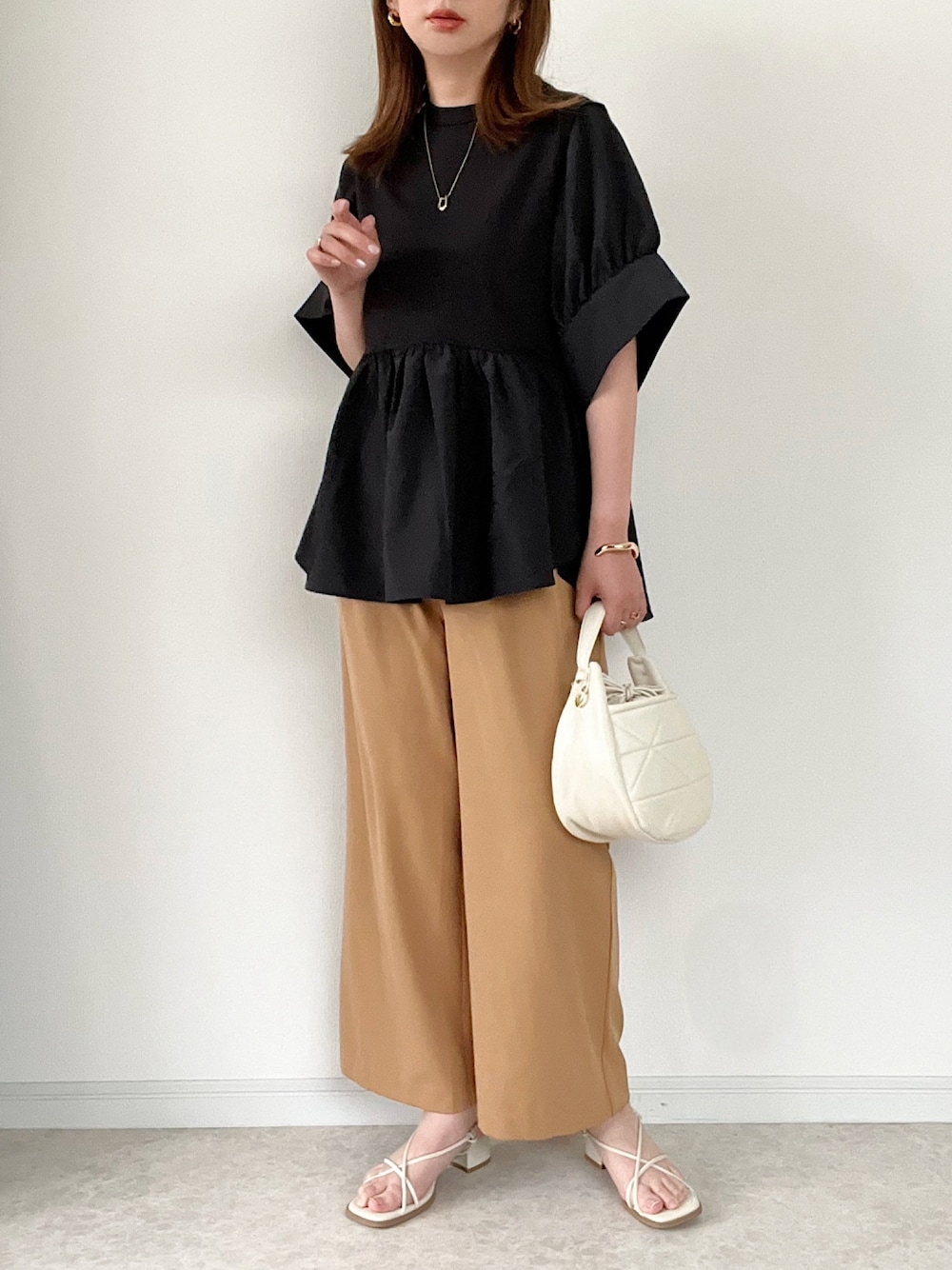 デザインがかわいい黒のトップスの お出かけコーデです。 ご覧いただきありがとうございました。