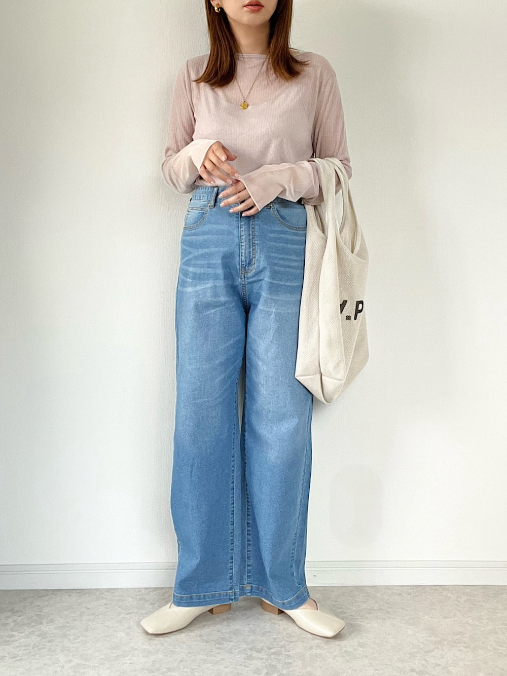 シアートップス×デニム👖 2枚目はしまむらの バルーンキャミを重ね着しました。 デニムはパシオスさんコラボ企画の お洋服です。 ご覧いただきありがとうございました。