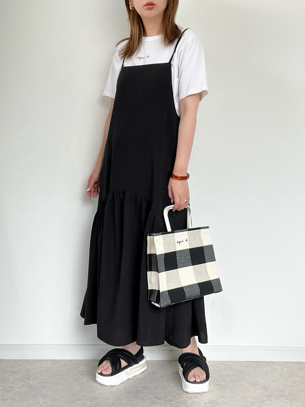 カジュアルなキャミワンピースコーデは 白黒で大人っぽくまとめました。 キャミワンピースは パシオスさんコラボです。 大好きなキャミワンピースです。 ご覧いただきありがとうございました。