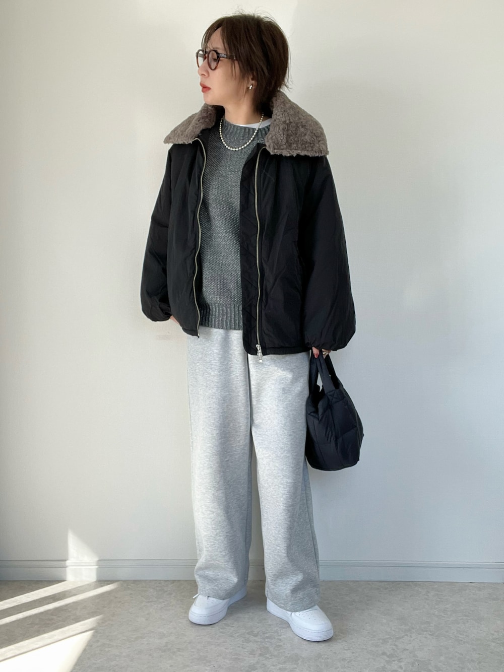 スウェットパンツとスニーカーでも ラフすぎない感じにしました。 ニットはしまむらです。 グレーが好き🫶