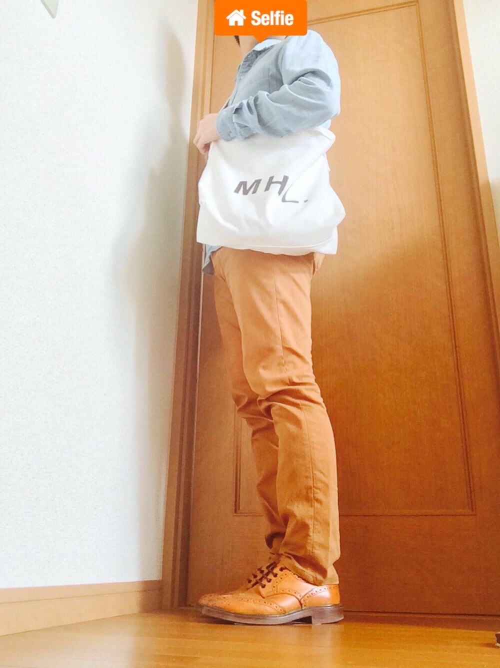 春らしい暖かさになってきましたねー(o^^o) いい感じに色落ちしてきたシャンブレーシャツ で春コーデです( ´ ▽ ` )ノ MHLのバッグは2ウェイの使い方ができて 様々なコーデで合わせやすいです🎵