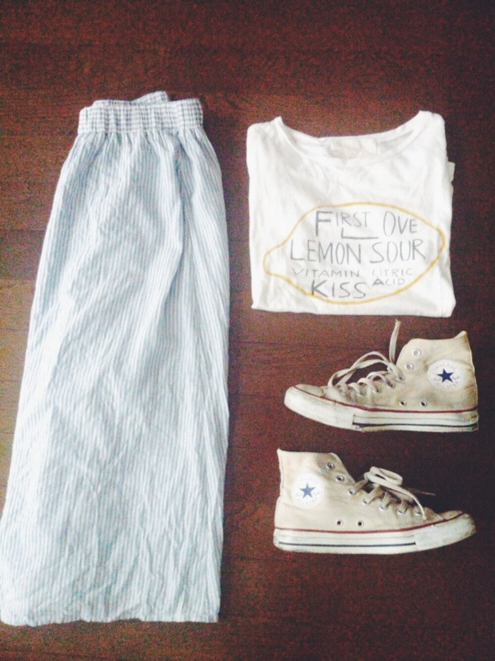 雨の日はスニーカーで⁑ Tシャツ‥bulle de savon スニーカー‥コンバース