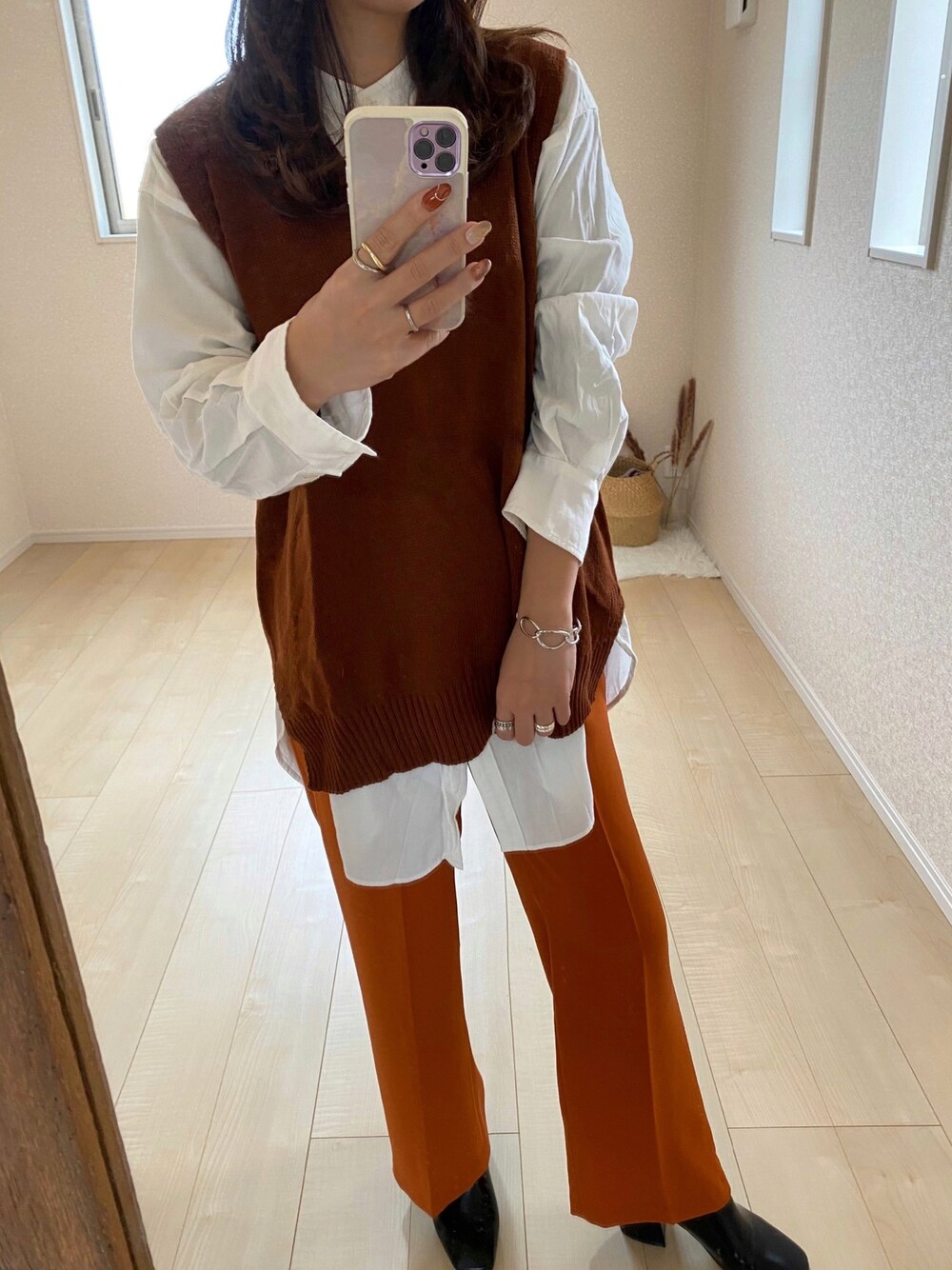 ・ ・ 🟠🟤 オールシーズンはけるパンツ🍊 ニットベストとブーツは韓国で購入🇰🇷 はやく韓国に行って服買いまくりたい🥺 アクセサリーはすべて@mois_accessory うつってないけど、カバンは #スピーディ 👜