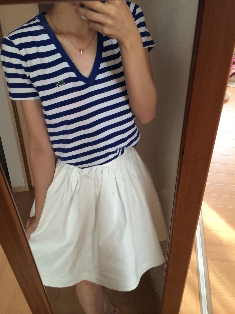 トップス:ラコステ スカート:スナイデル ネックレス:コーチ 今日はシアターオーブでやっている ブリングイットオンを観て きました(^^) そのためちょっぴりスポーティを 意識したコーデです。