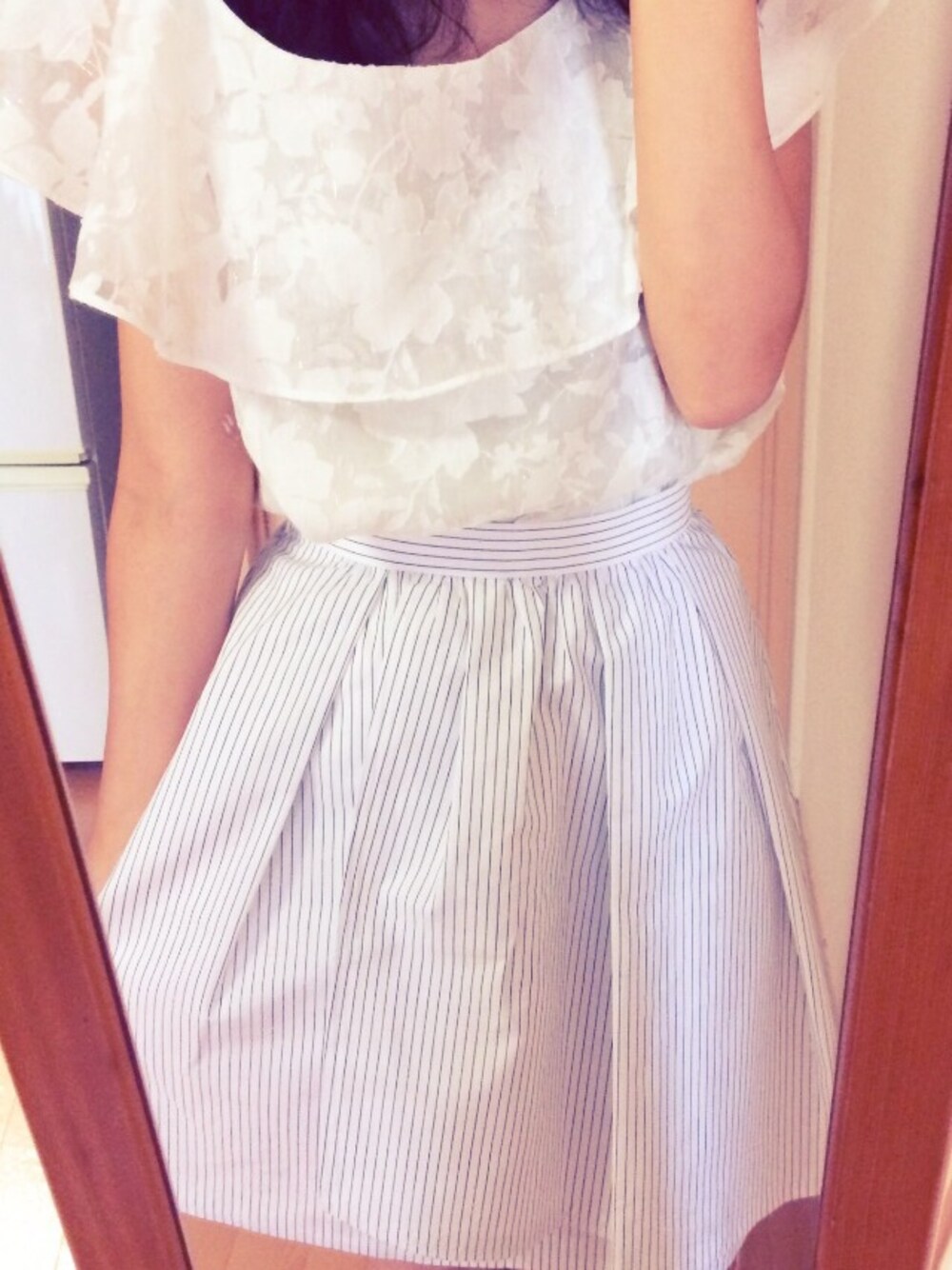 トップス:マーキュリーデュオ スカート:アプワイザーリッシェ 昨日はロシア料理を食べに行きました。 写っていませんが、頭には ブルーのリボンをつけて、爽やかコーデに してみました。