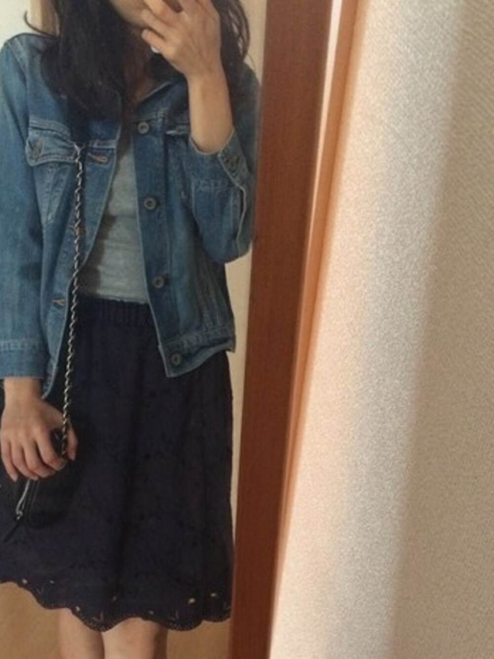 ようやく季節が追いつきました。 涼しい日が続いたので秋コーデ。 中はタンクトップです。 ネイビーのレーススカートは 実は色違いでホワイトも 買いました。