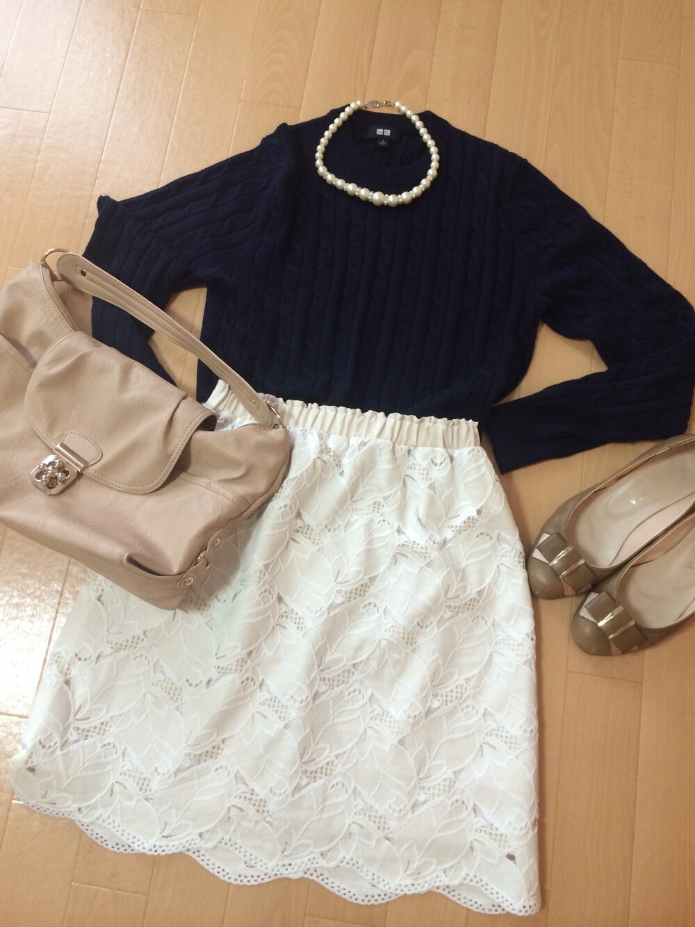 ちょこっとお出かけでした。 インスタで噂のUNIQLOメンズの ケーブルニットです。 パールを合わせたり、レーススカートと 合わせたりして、女性らしさを 出してみました。