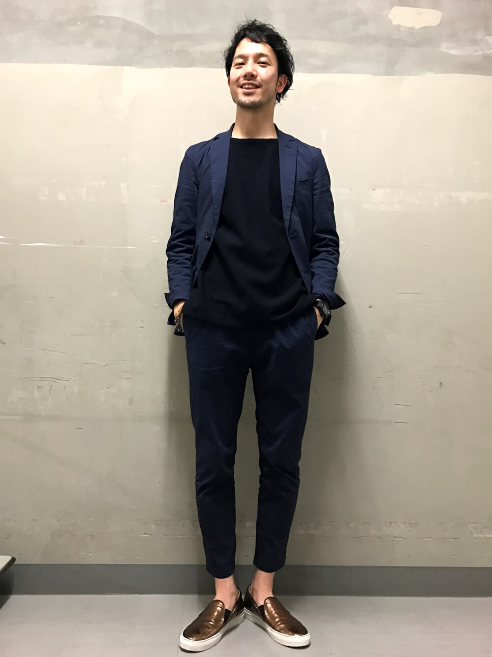 mo_jya_taのテーラードジャケット「パッカブルサッカージャケット」を使ったコーディネート