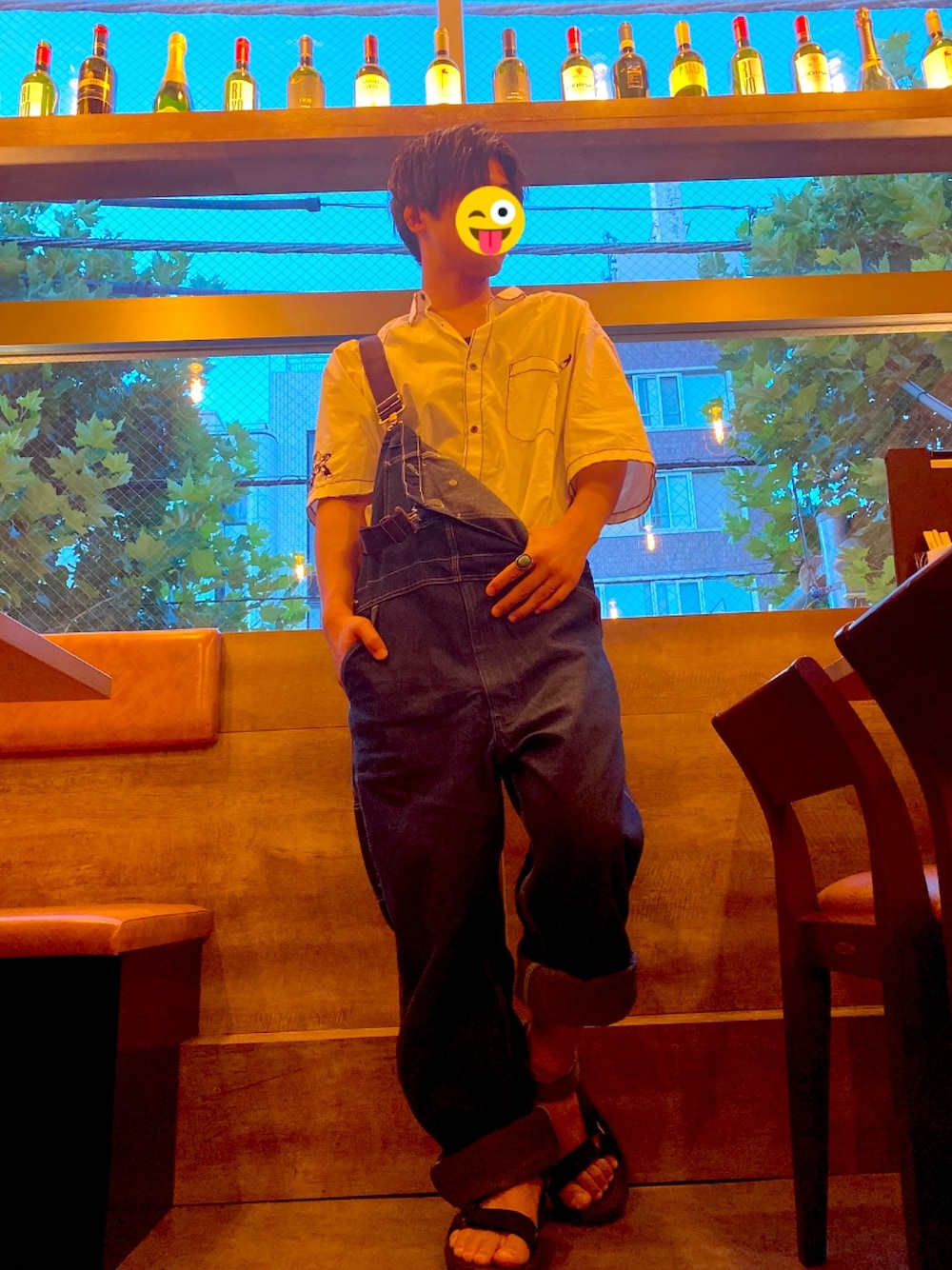 オーバーオールと 手作りシャツ👔 肩にゴーリキーを添えて… オーバーオールDAY