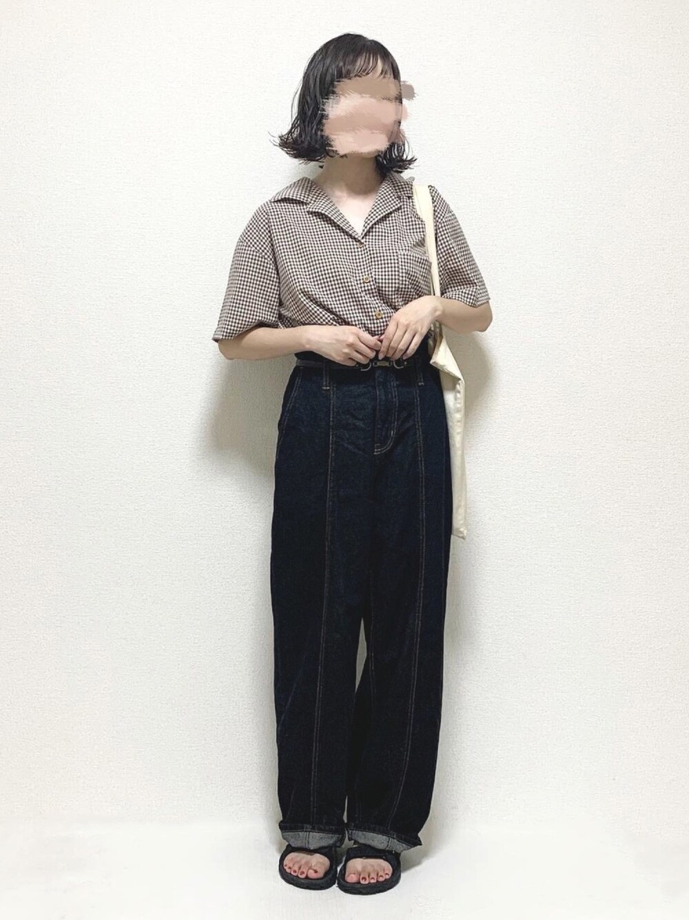 ukiのシャツ/ブラウス「ファッションインフルエンサー fuwa. × INTER FACTORY ギンガムチェックオープンカラーシャツ」を使ったコーディネート