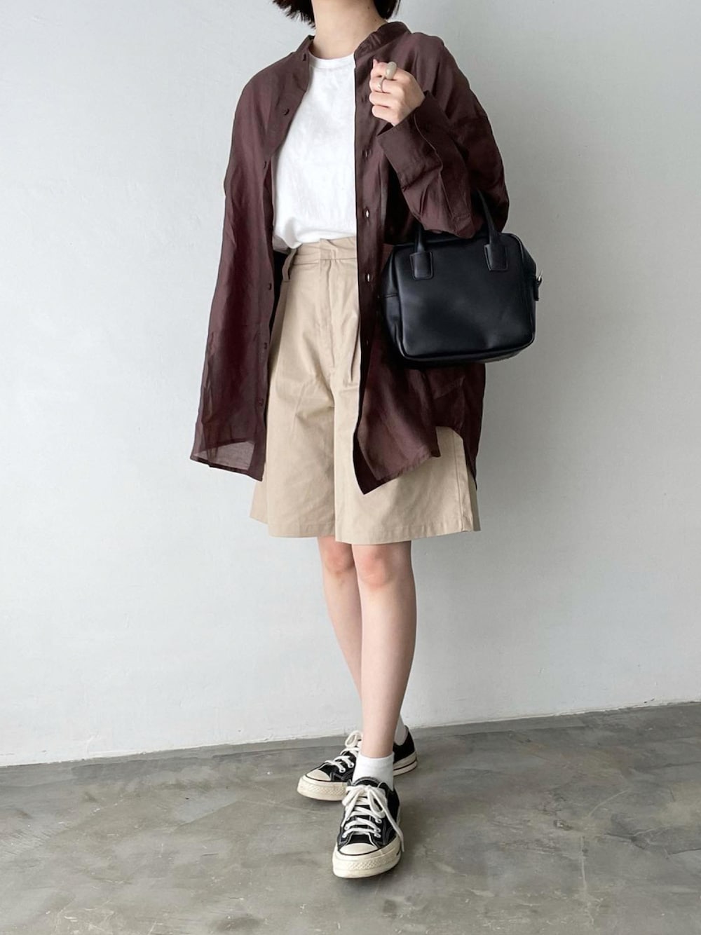 シャツ × ハーフパンツ 色で秋を取り入れていく 🛒🍂 Instagram → @__o__ki