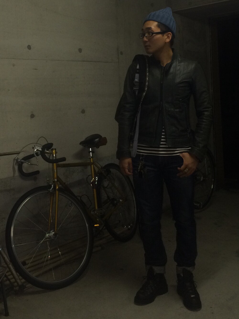 週末! さみしんぼは、暇つぶしに飲みに繰り出す! 広島は横川のカレー&バー外国で よっばらっての音楽のお勉強ちう。 今日はブルー系でまとめてみました。 このレザージャケットは大学時代にフンパツして 買った、思い出の品。 綺麗なネイビーが、経年変化で 緑がかってきて、余計お気に入りに。 女はアンチエイジング、 男は黙って、エイジング! 愛なんていらない、欲しいのは コメント、セーブ、フォロー、ハート。 あ、ハートは愛か。