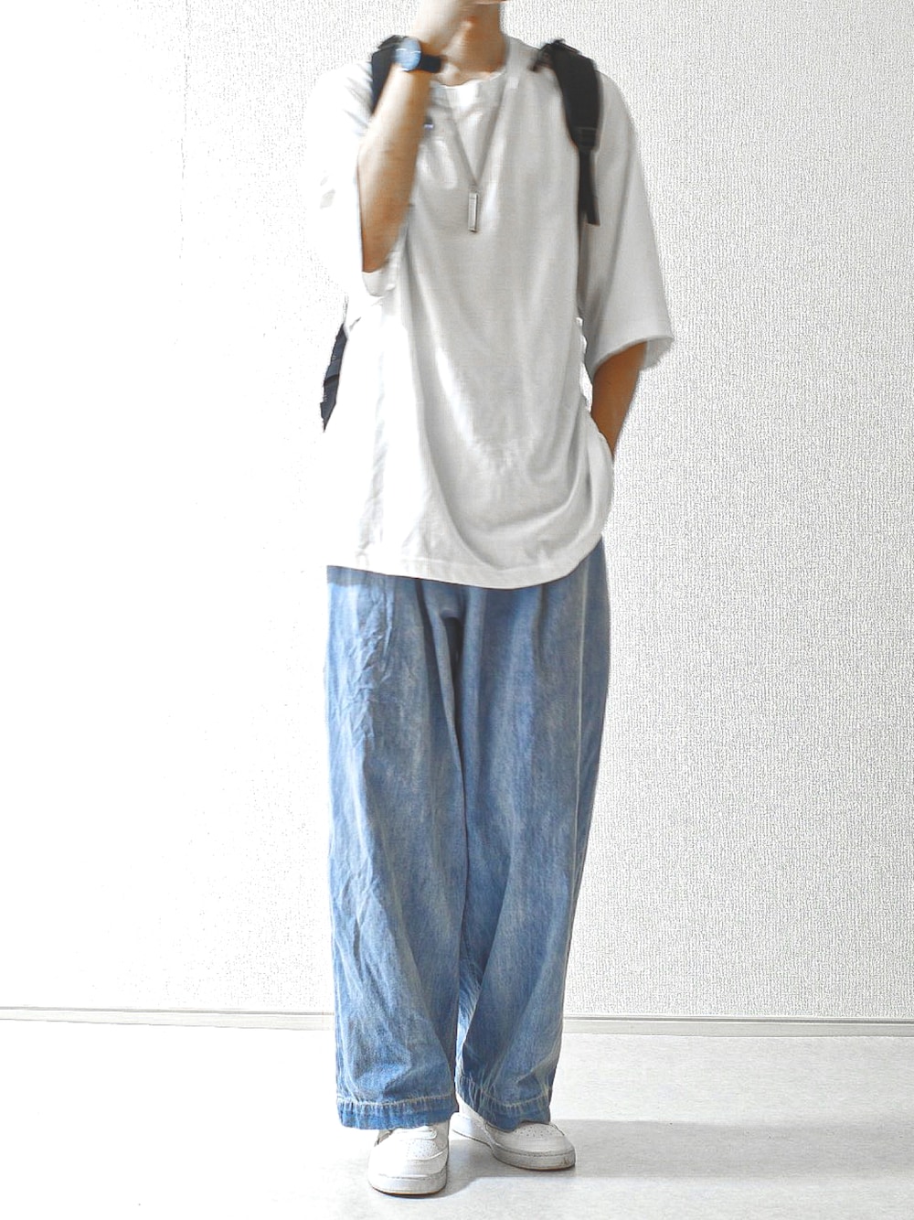 もくのデニムパンツ「ルーズバギーワイドデニム」を使ったコーディネート