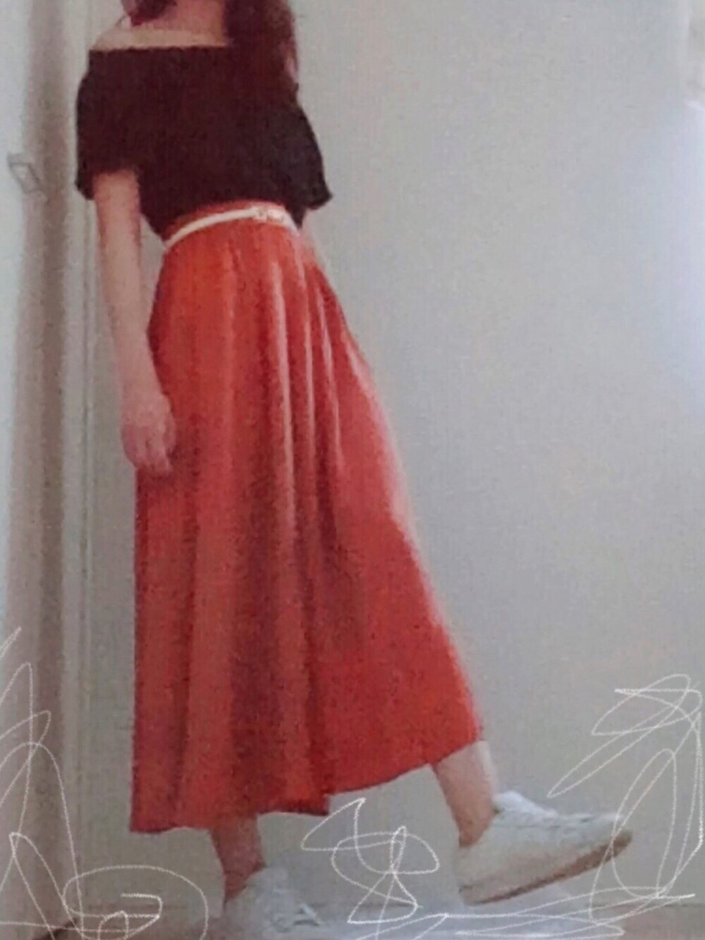 GUのフレアスカート涼しくてシルエットも◎裏地もちゃんとついてます。 それはそうと足首ほしい! こんなしょーもない日々の記録を見てくださってありがとうございます🙇♂️ トップス Sサイズ スカート Mサイズ