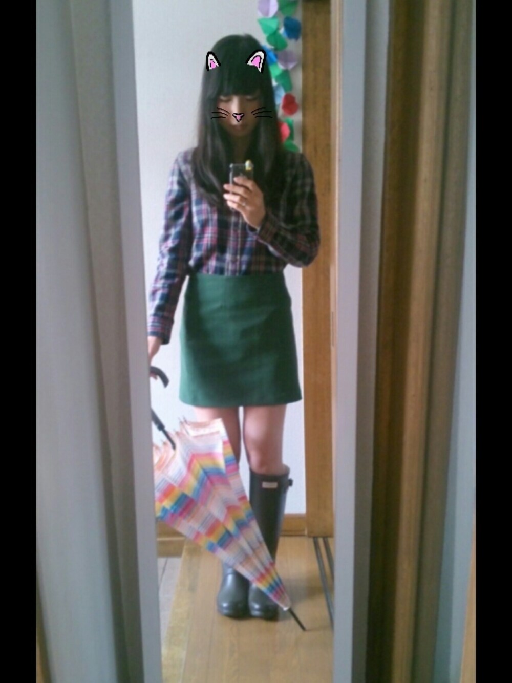 短めのボトムに合わせることが多いです(^ω^) シャツ*UNIQLO スカート*韓国で購入 傘*SIPS