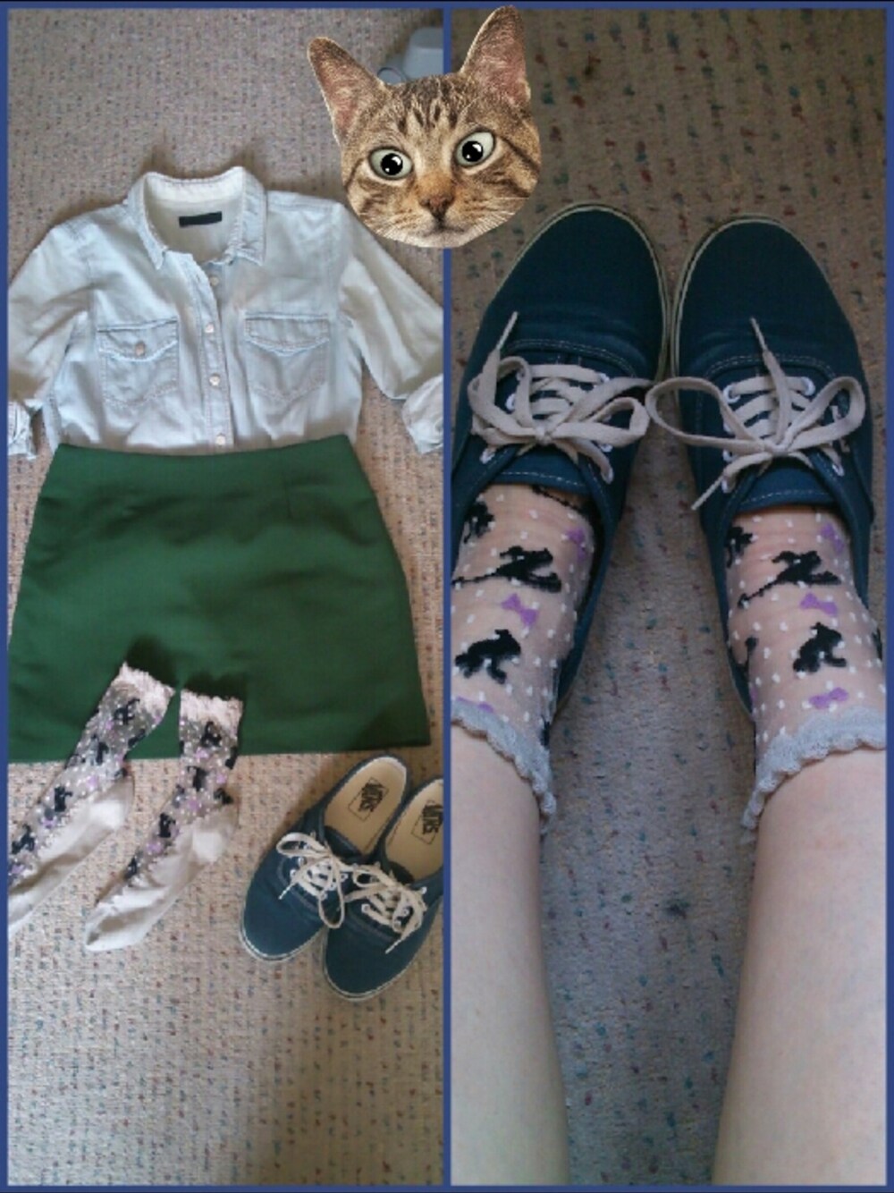 スケスケの靴下には猫ちゃんの絵が書いてあります(=σωσ=)ニャン シャツ#JEANASiS