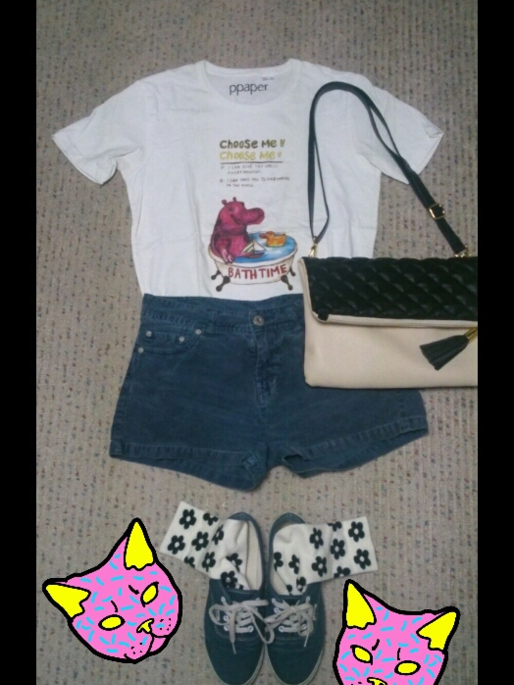 青が好きですヽ(=´▽`=)ノ Tシャツ*UNIQLO ショーパン*ciaopanic バッグ*retro girl casita 靴下*bell wink ginza