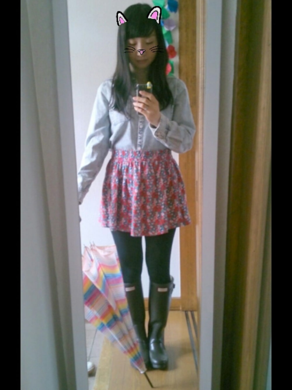 昨日からずっと雨ですごく寒いです(´°ω°`) ダンガリーシャツ*??(アウトレット) スカート*??(アウトレット) 傘*SHIPS