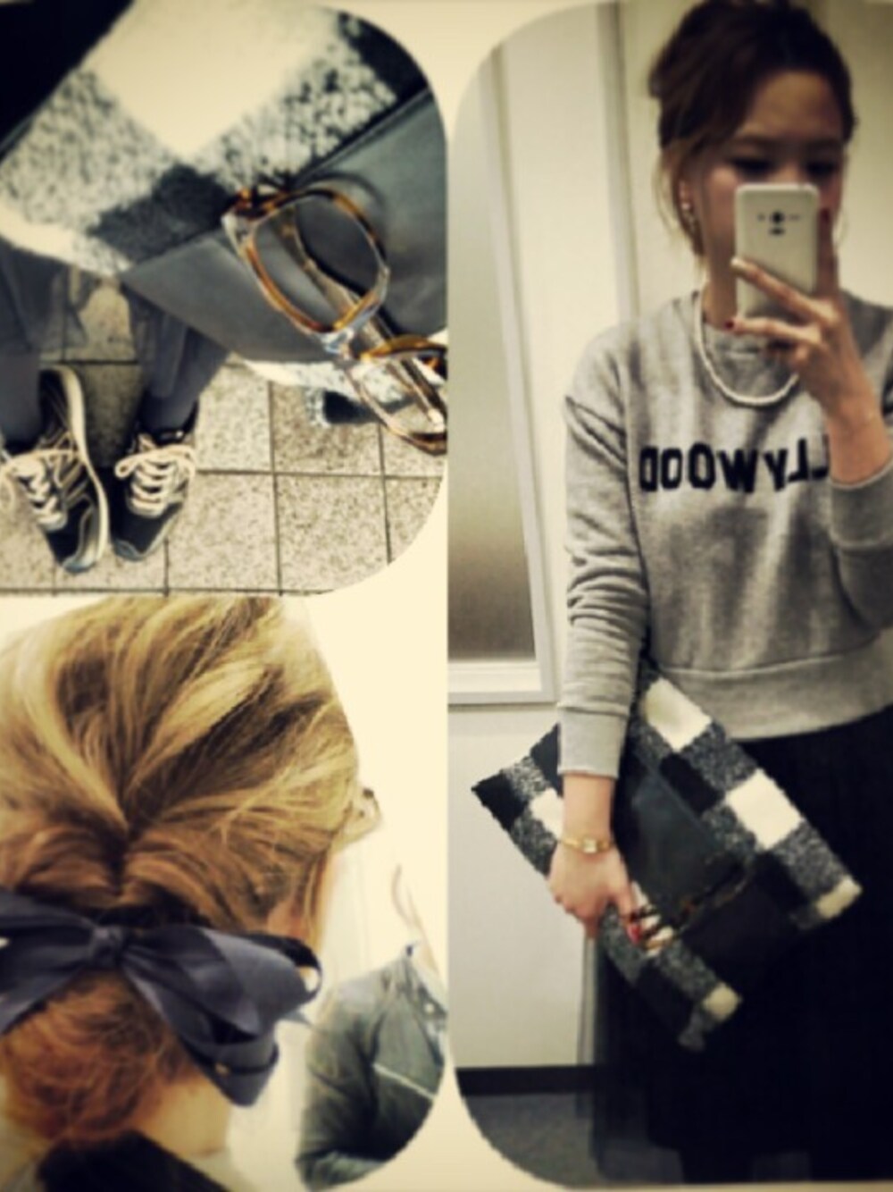 mのクラッチバッグ「UNDER BAR RAW.@MINIMALISTIC Holdeing check pattern clutch BAG」を使ったコーディネート