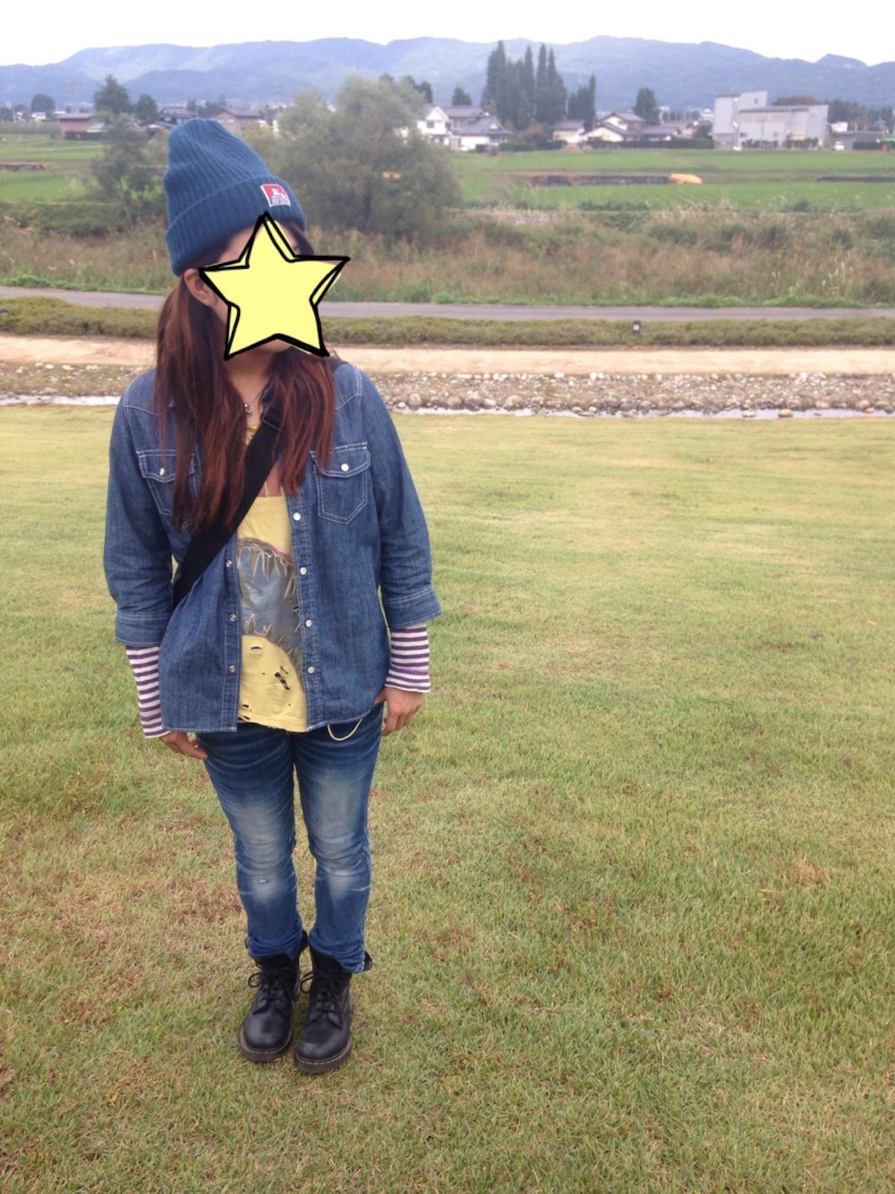 ☆初めての掲載☆ さぶ~ぃので、いっぱい重ね着しちゃいました(♡´艸`)✨ Tシャツは、お気に入りのサメのイラストに穴だらけなんで、父親に「ゴミ箱から拾ってきたのか?」と言われましたʕʘ̅͜ʘ̅ʔ