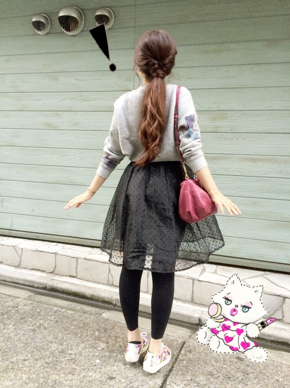 スウェット♡allureville スカート♡韓国 スニーカー♡DHOLIC バッグ♡Chloe 今日のコーデの後ろ姿♬ 最近ハマっているヘアアレンジ♡ 楽ちんなので、お仕事中も最近はこれ◡̈♥︎