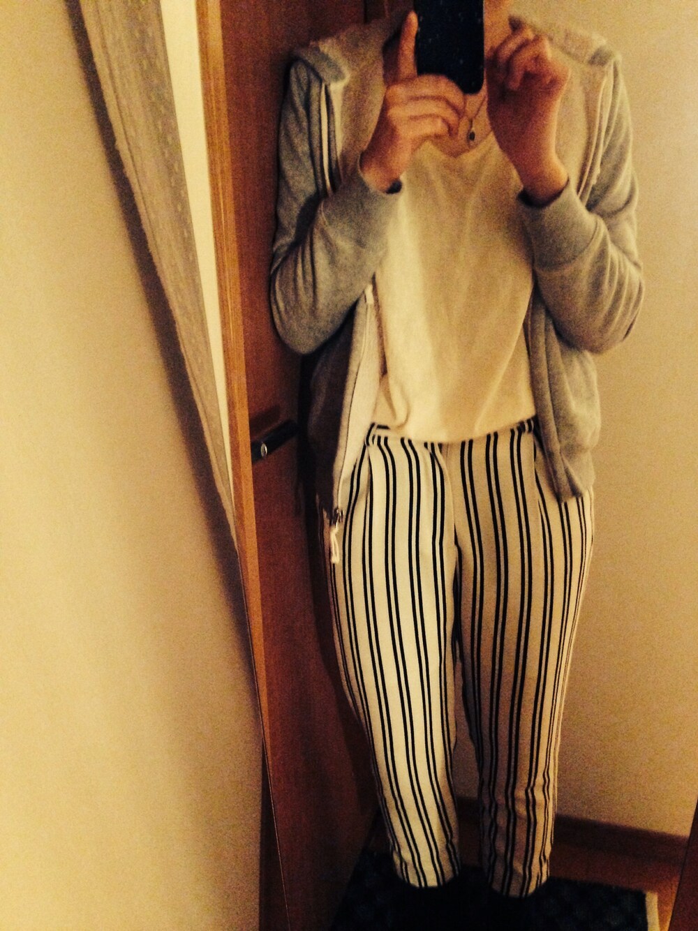 momo333のその他パンツ「ストライプ柄8分丈タックパンツ」を使ったコーディネート