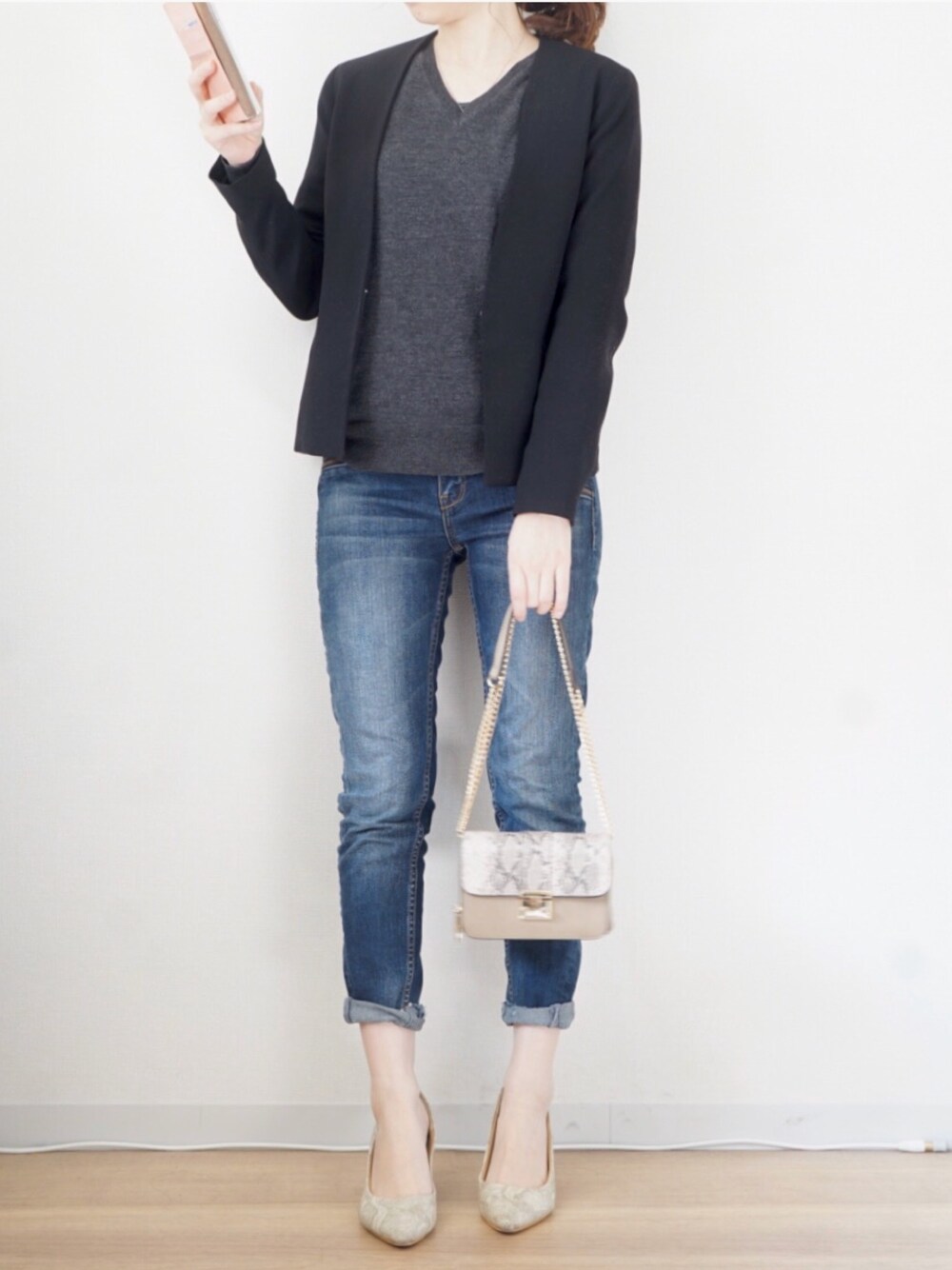 プチプラブランド大集合になった😌 休日コーデにはやりのジャケットをあわせてみたよ。カバンと靴をパイソンで揃えてみました🙌