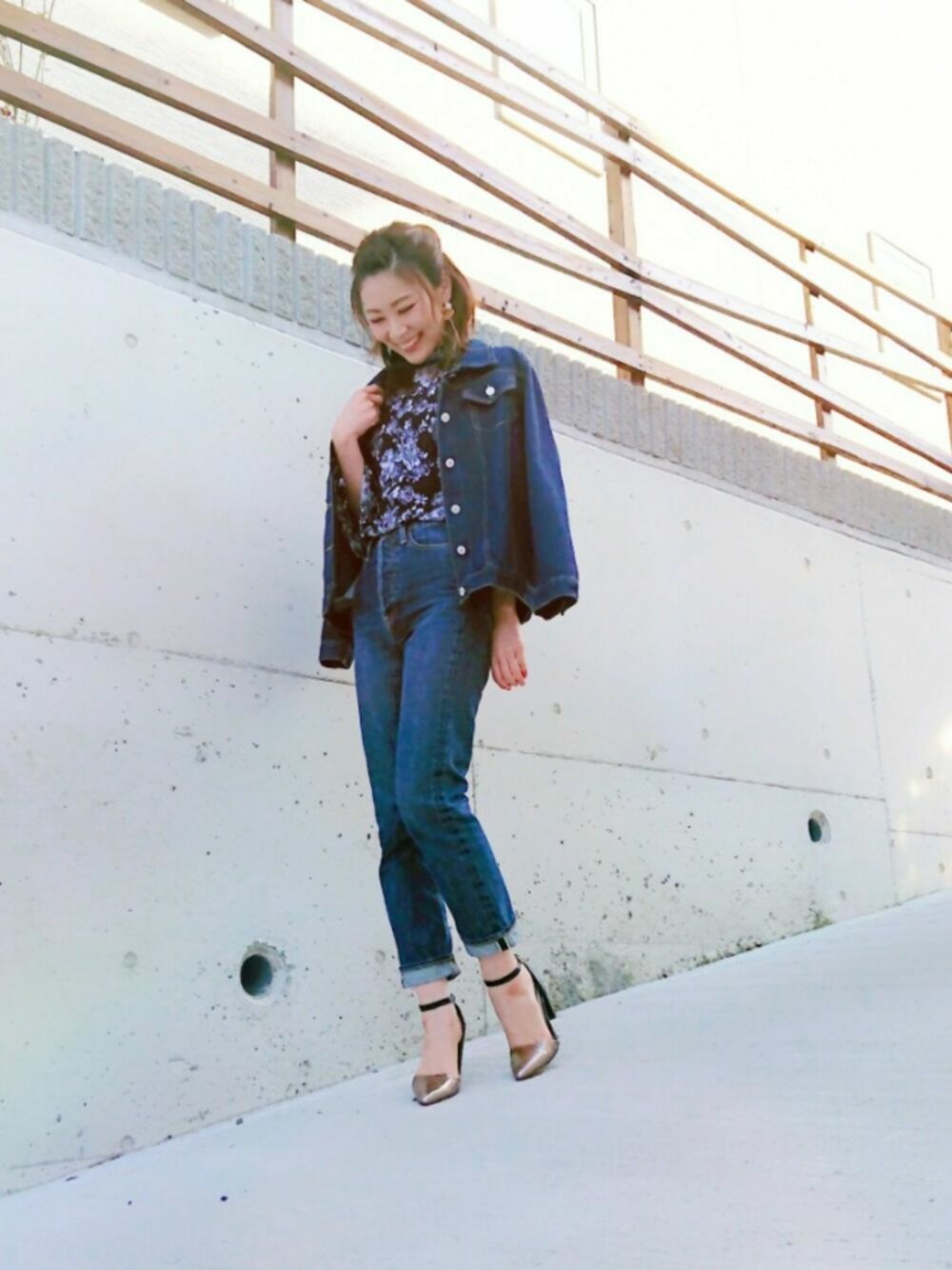 デニデニ👖 デニムオンデニムって個人的に大好き❤️ カジュアルだけど、ポンパドールにゆるウェーブのヘアアレンジで大人っぽく😉➰💕
