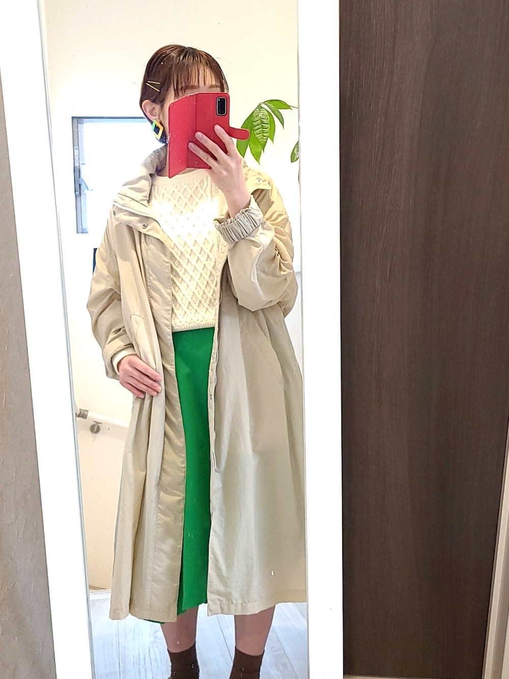ベージュ系のその他アウターを着用したレディースの冬コーディネートの1枚目の写真