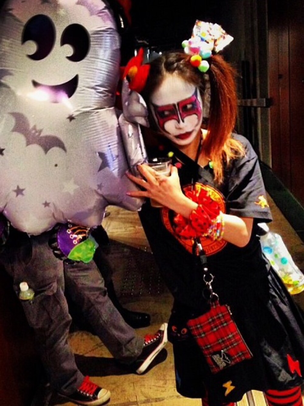 去年のハロウィン。 赤坂ブリッツに行った時の。 一昨年のゾンビは探したけど画像が見つからなかったのでやめた。 ほんとは衣装を作る予定でデザイン画まで書いてたんだけど時間なすぎてできなくてイベントTにボンボンいっぱい縫い付けてスカートにフエルト貼り付けた! いちばん頑張ったのはお菓子の髪飾り! お菓子をとにかく固めただけだけどバランスとかハートの飾りと組み合わせるのとか意外と時間かかりました。。。 他にもいろいろ付けてるんだけどな。。 ハロウィン今年も仮装する予定☆