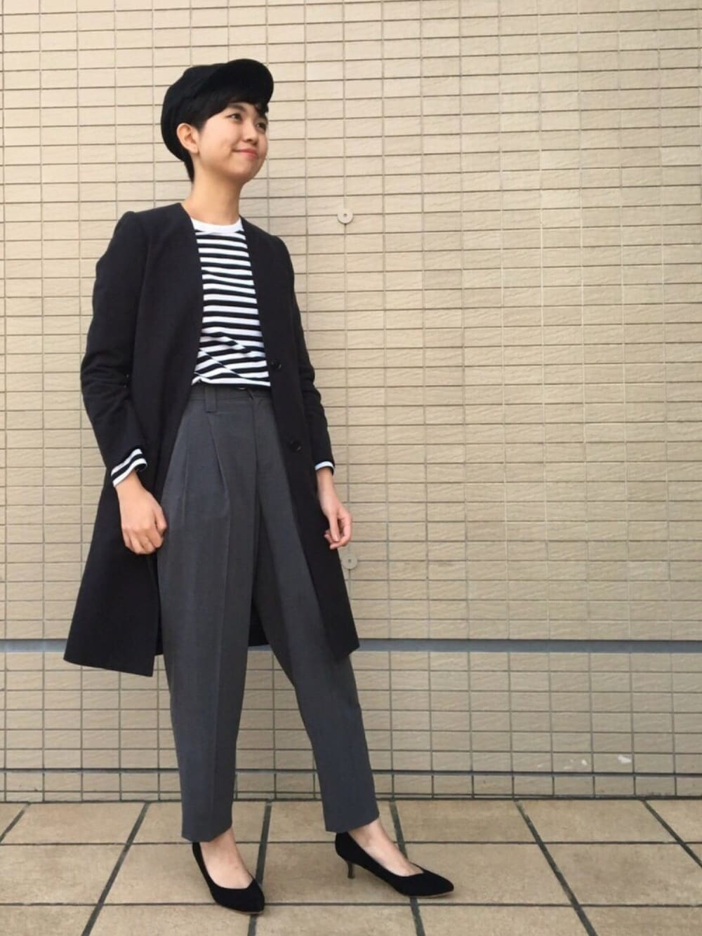 MOMOKOのチェスターコート「モールスキンノーカラーチェスターコート」を使ったコーディネート