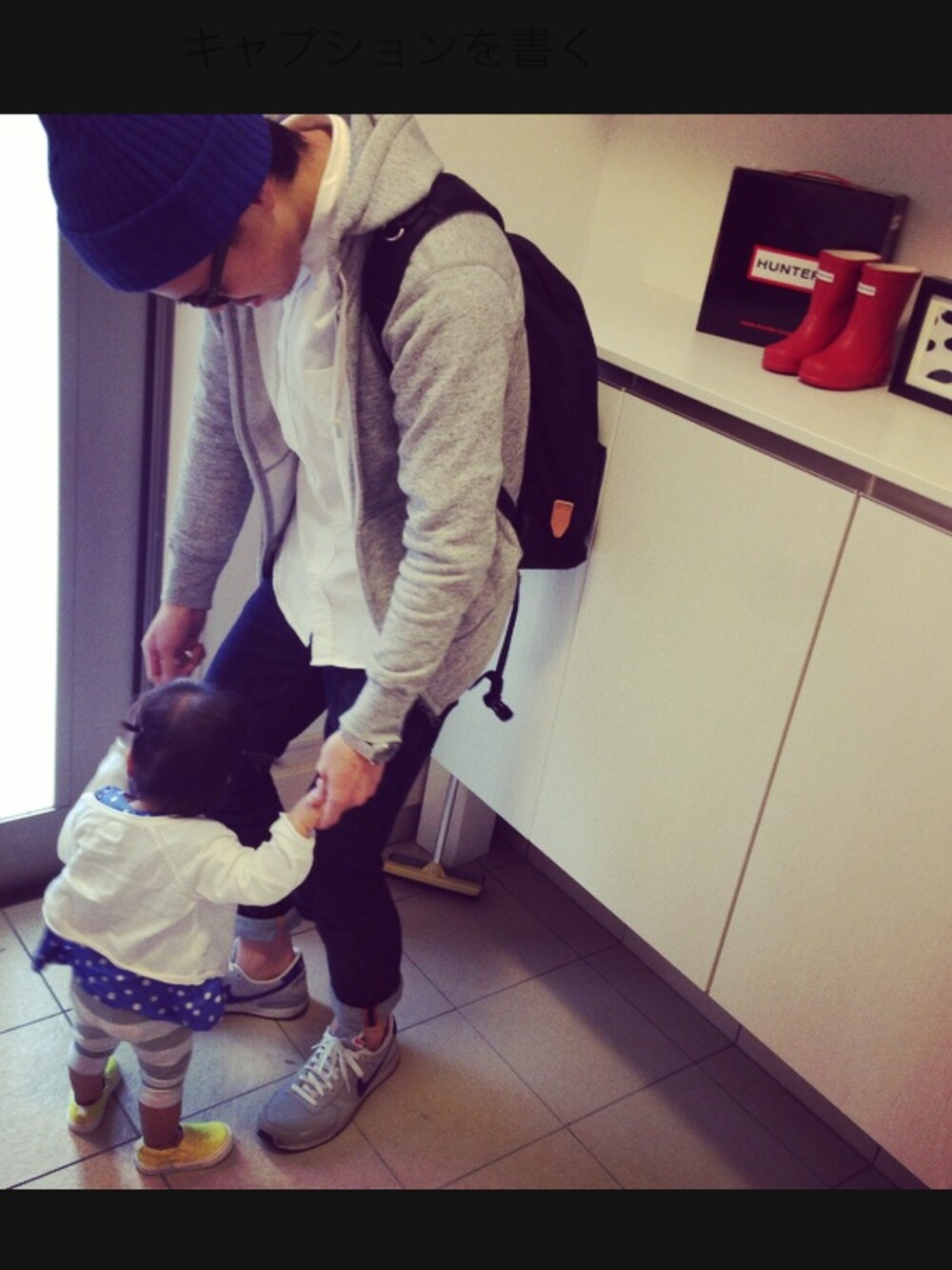 子供と玄関にて.....