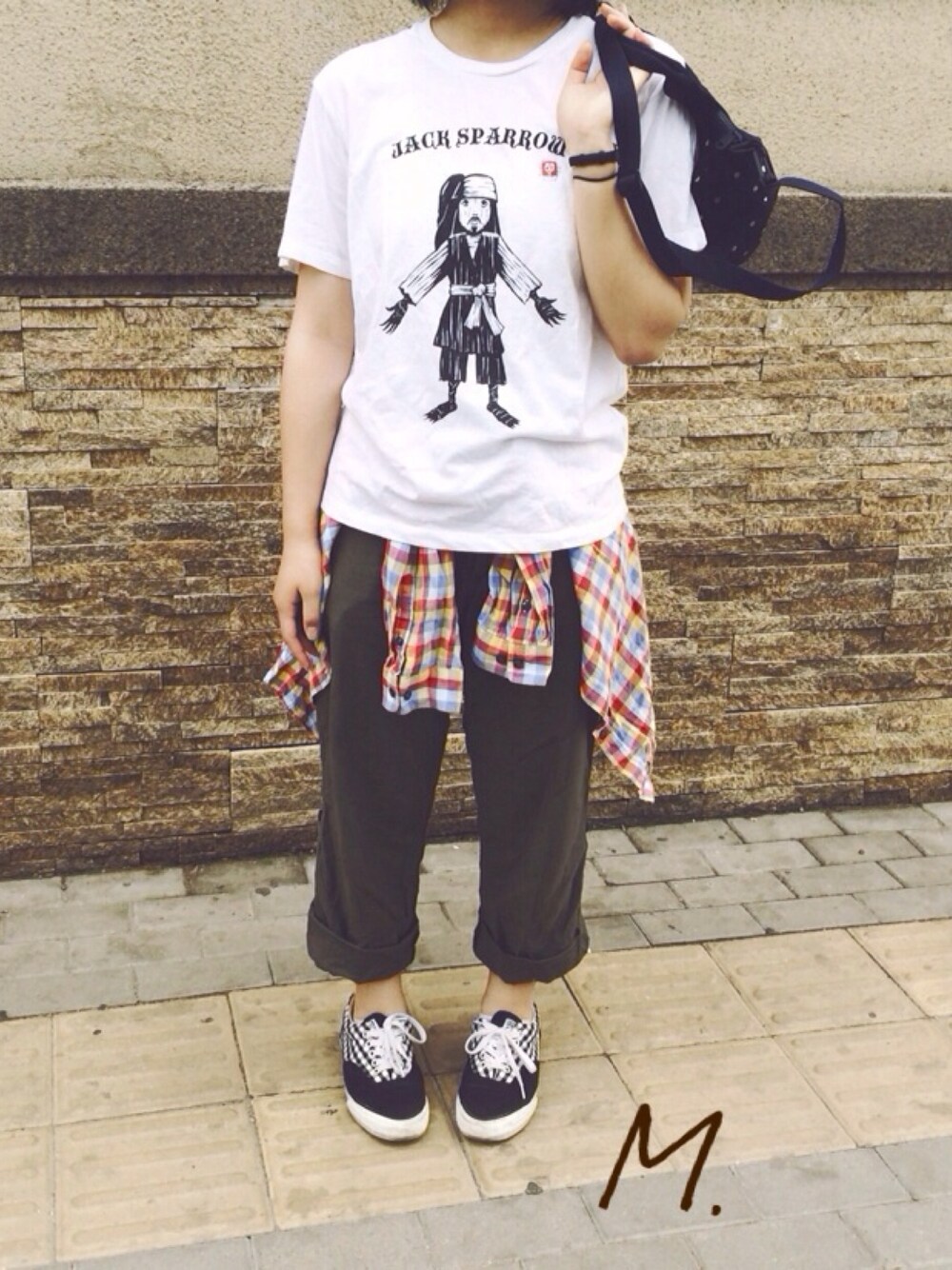 二回目の投稿です。 今日は全身靴と鞄以外は全部ユニクロです。 全部小学校時代に買ったものです、だからもう5、6年は経ってます。 シャツの腰巻き、やってみました。 シャツはこのコーデのポイントです。 色が好きです。 2015.6.27