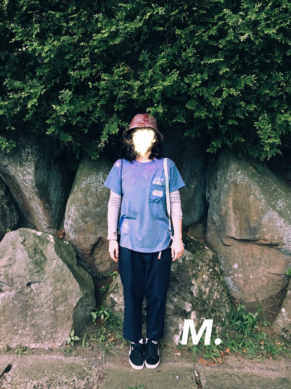 8月14日、箱根。 顔がない人みたいになっちゃった。 Tシャツ=double name ズボン=SM2 靴=puma 帽子=チチカカ