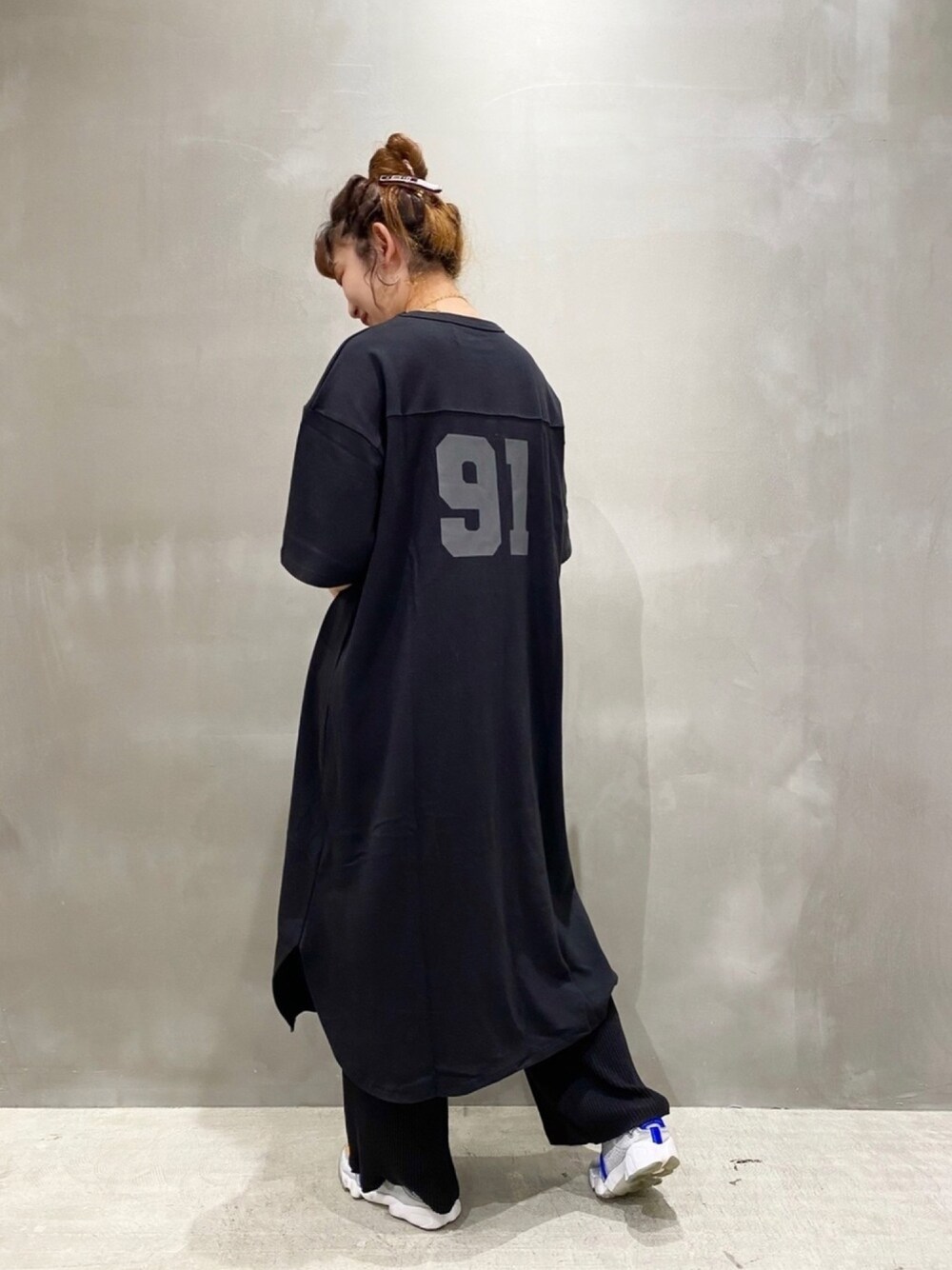 もん(LAKOLE 橿原イオンモール店)のワンピース「ネップジャージーフットボールワンピース / LAKOLE」を使ったコーディネート